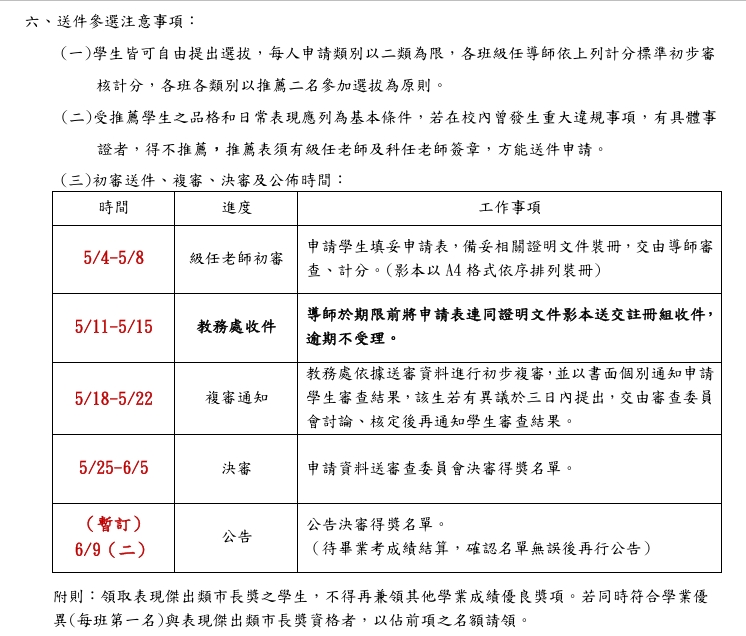 請有意提報之學生及家長,務必詳細閱讀要點內容,並注意作業時程。