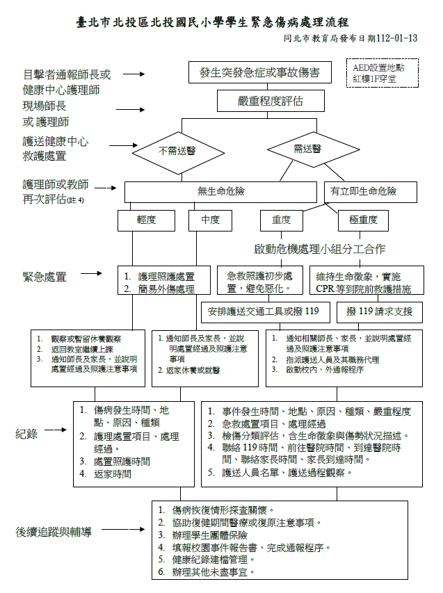 1. 學校教職員工緊急傷病處理流程準用本處理流程。