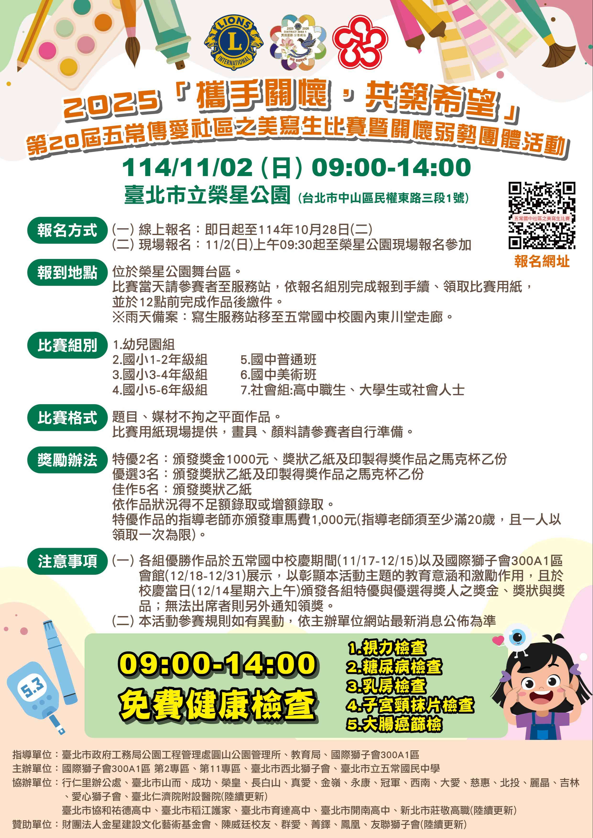 一、比賽時間:114年11月2日(星期日)早上9時至15時整(寫生比賽至12時)。