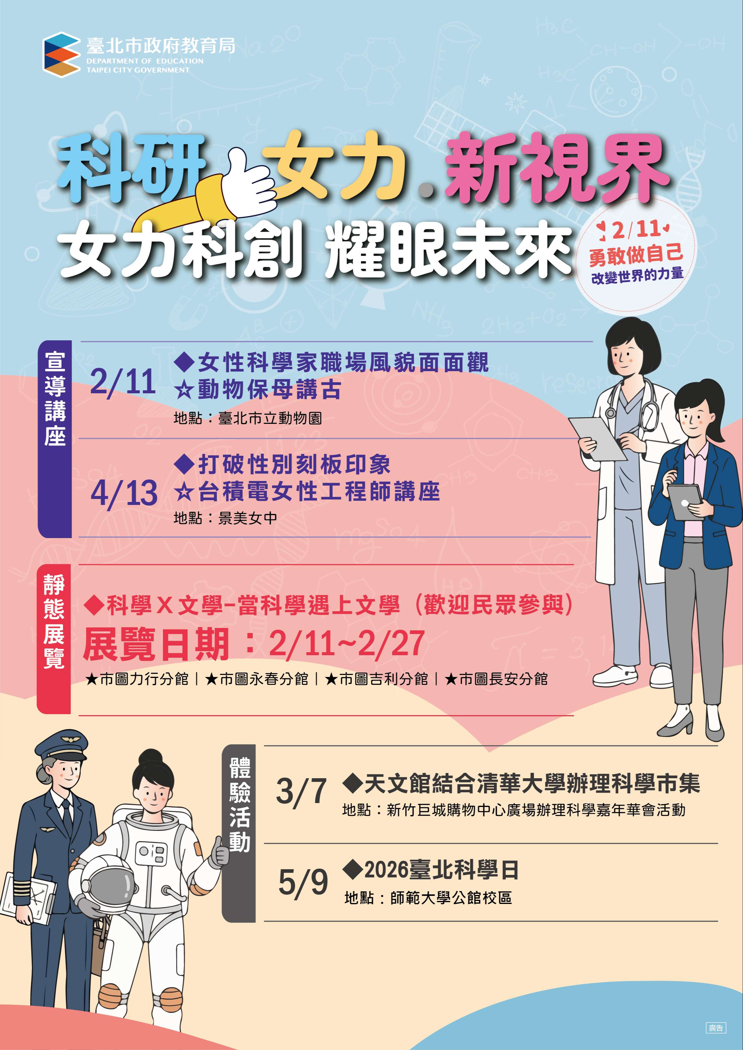 公文附件海報體驗活動誤植為2025臺北科學日,茲更正為2026臺北科學日。